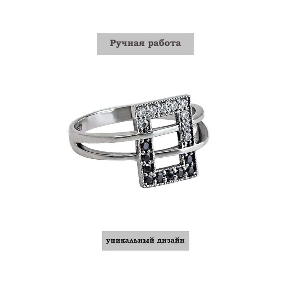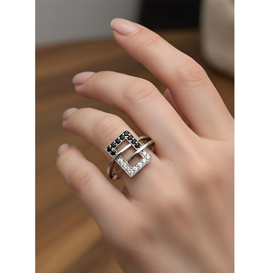Черные муассаниты утопают в сиянии белых, а геометрический узор создает захватывающий контраст.