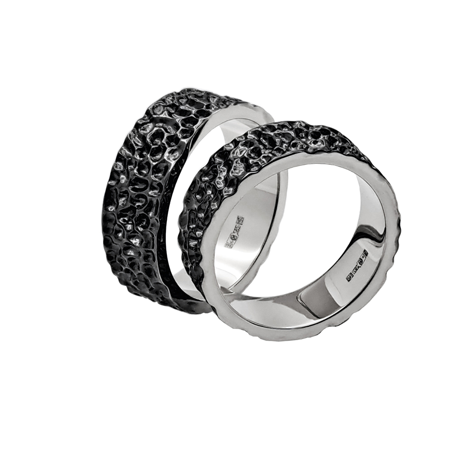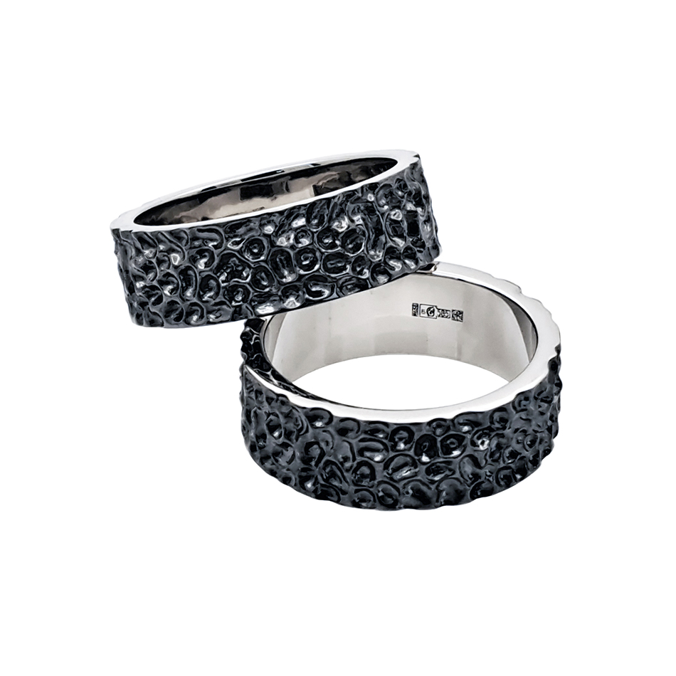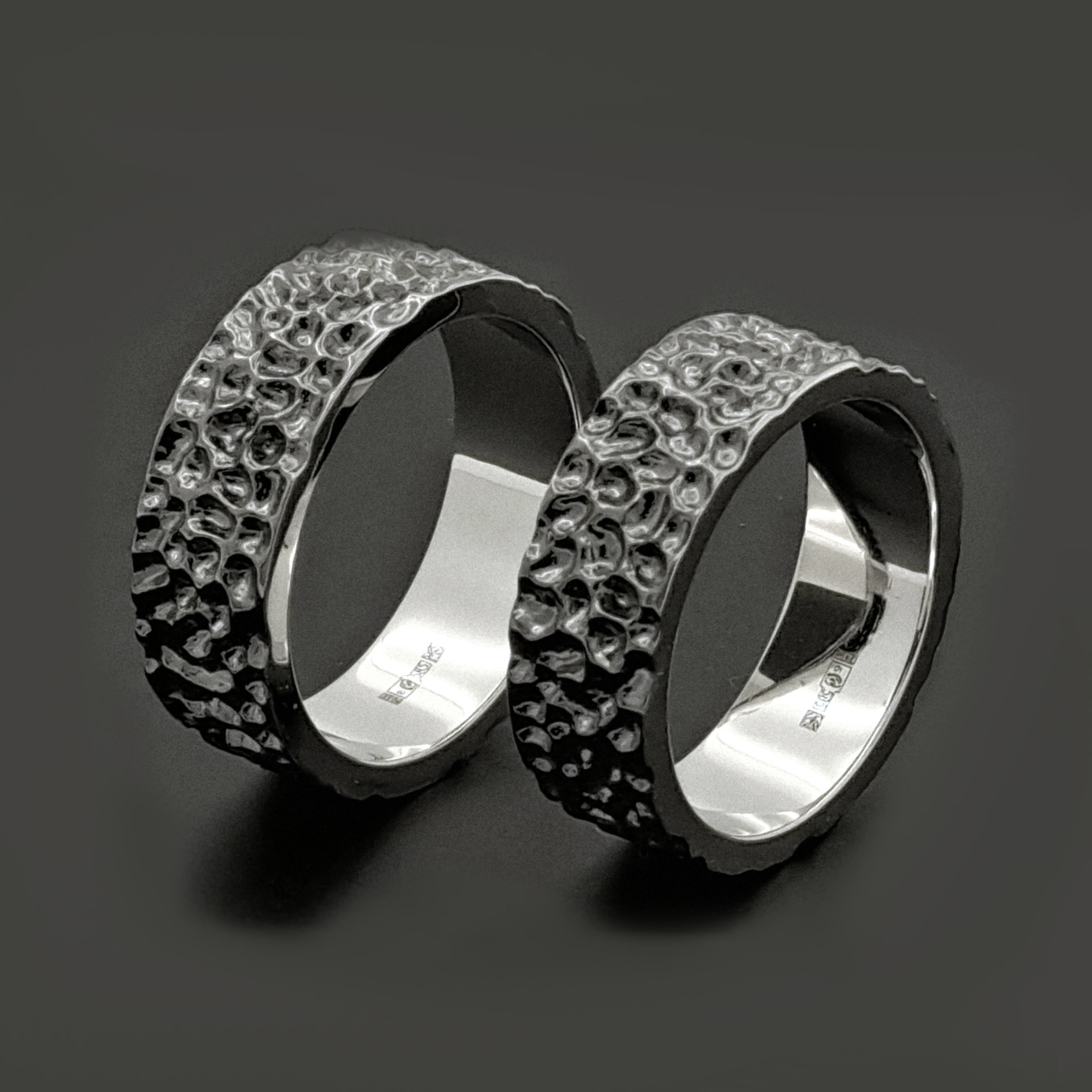 Парные обручальные кольца из белого золота 585 пробы изготовлены на заказ с применением технологии 3D моделирования.