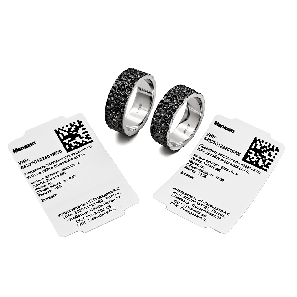 Все изделия из золота проходят опробование, клеймение и маркировку в Федеральной пробирной палате с присвоением уникального кода (УИН), зарегистрированного в ГИИС ДМДК.