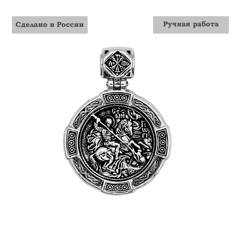Нательная иконка Святой Георгий Победоносец выполнена из серебра 925 пробы. Литьевая модель - подвеска прочная (не фольга).