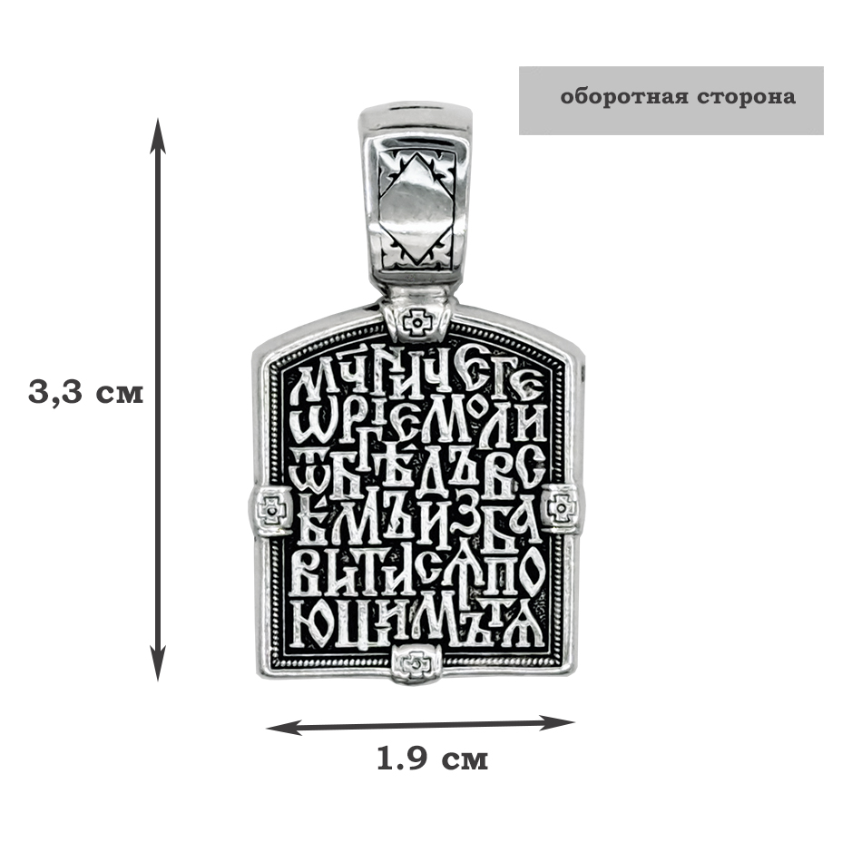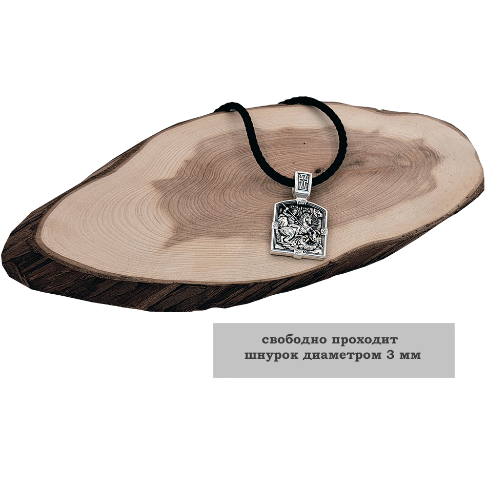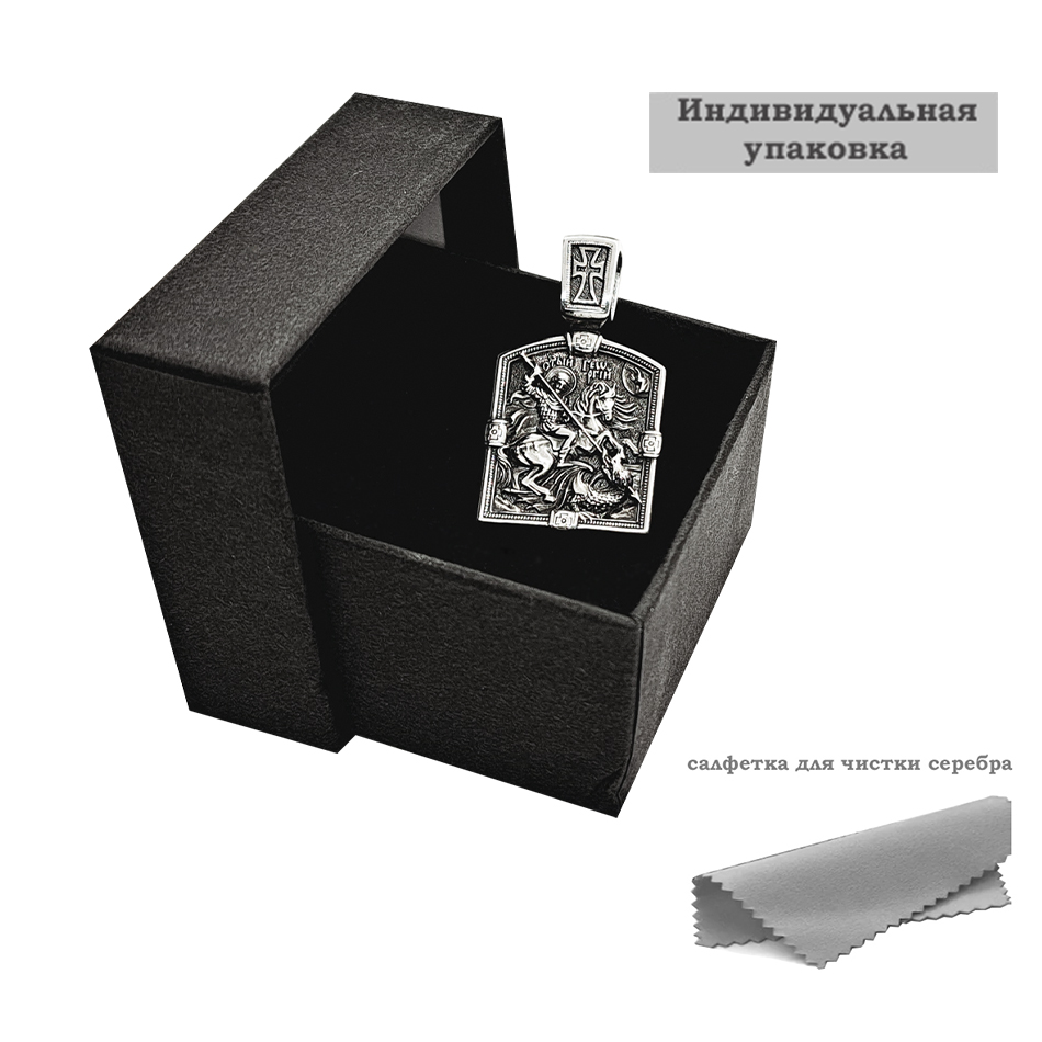 Нательная двусторонняя иконка Святой Георгий Победоносец из серебра 925 пробы.
