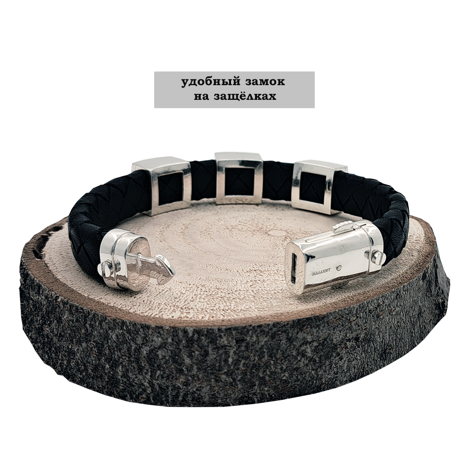Браслет выполнен из натуральной плетёной кожи сорта премиум.