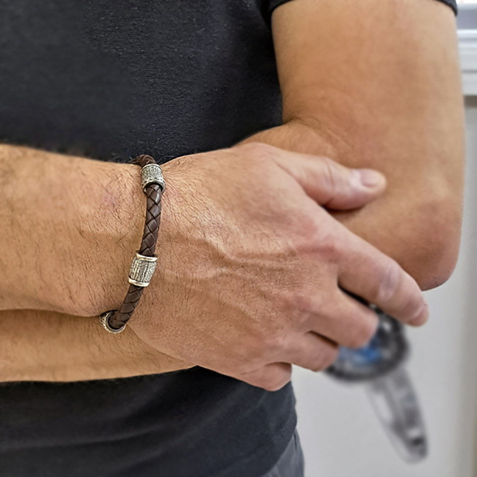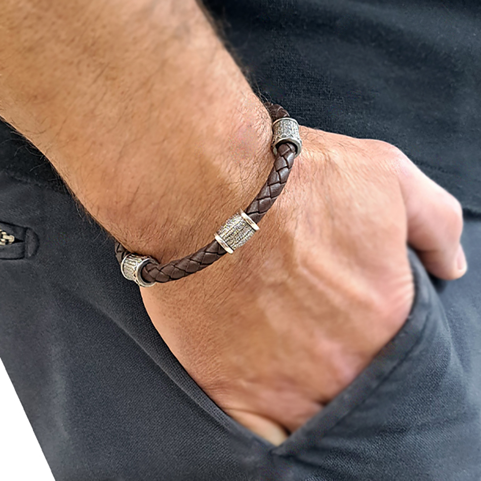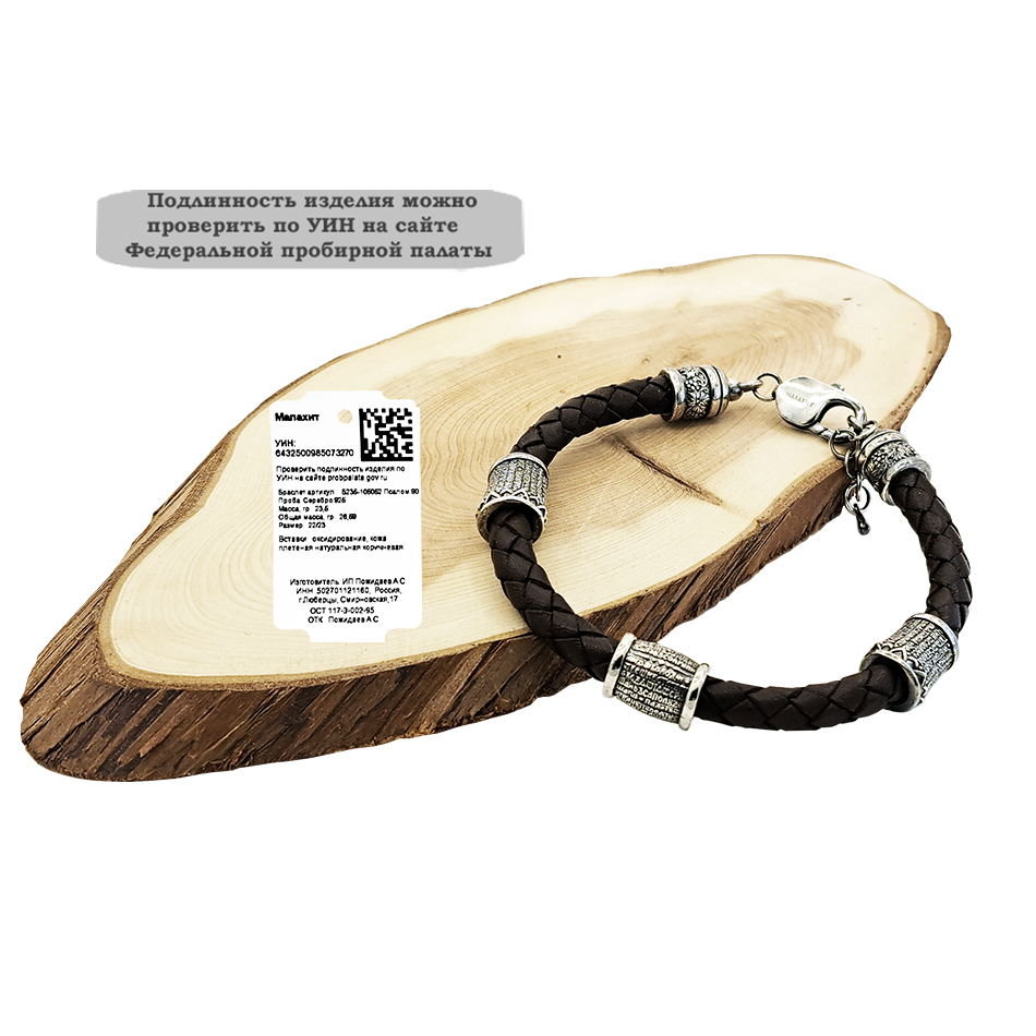 Шнур браслета из натуральной, плетеной кожи - диаметром 6мм, коричневого цвета.