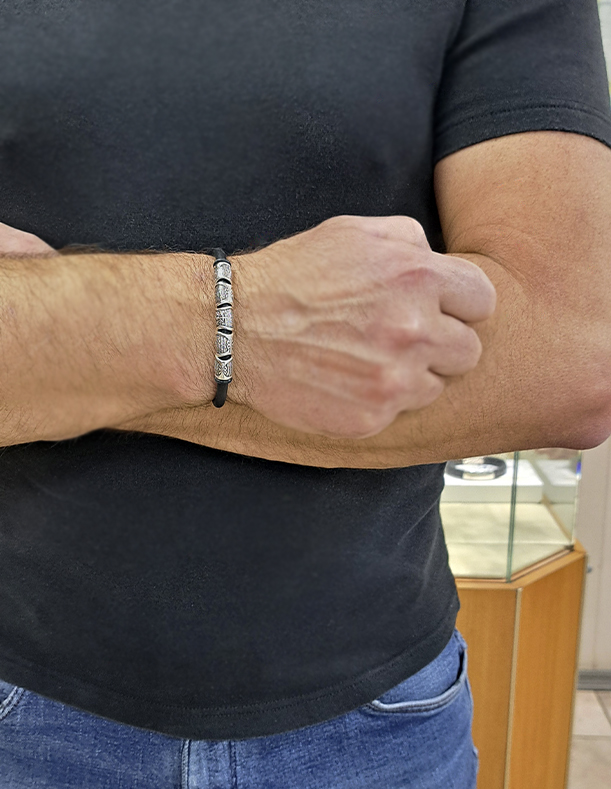 Подвижные бусины-шармы с молитвой, и концевые Виноградная Лоза, выполнены из серебра 925 пробы с чернением.
