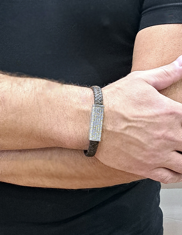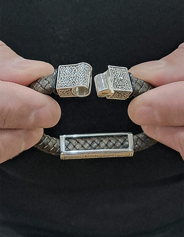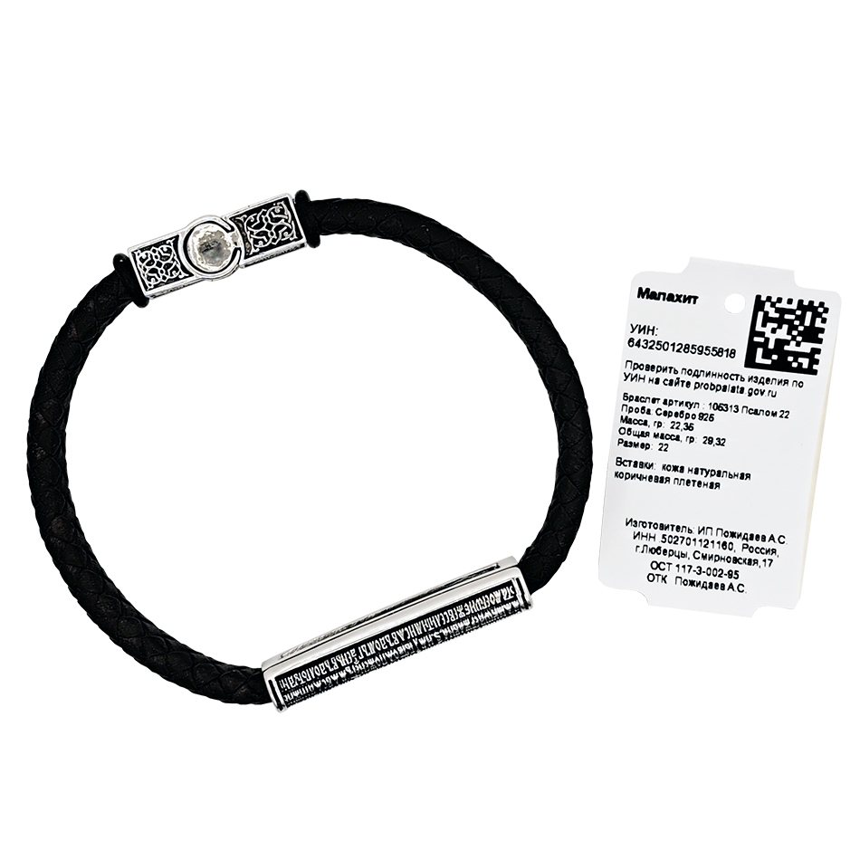 Православный мужской браслет выполнен из винтажной плетёной кожи темно-коричневого цвета.
