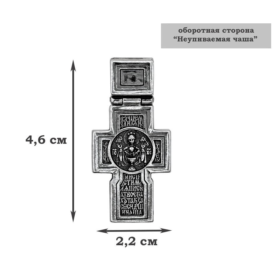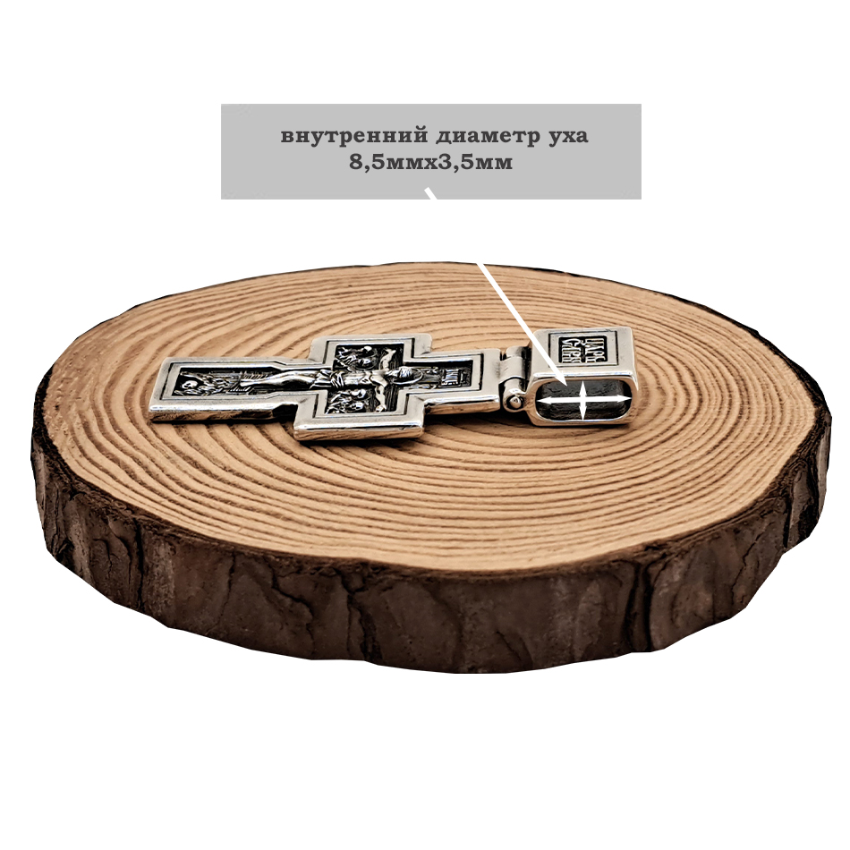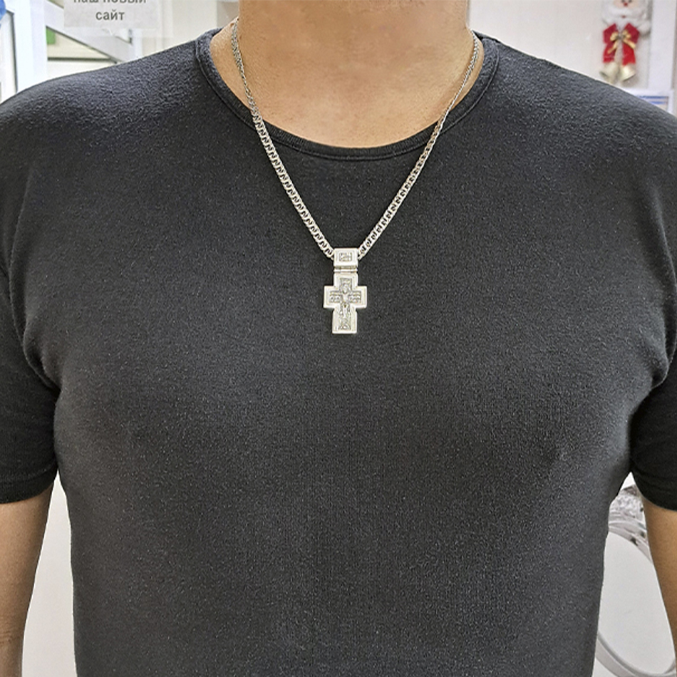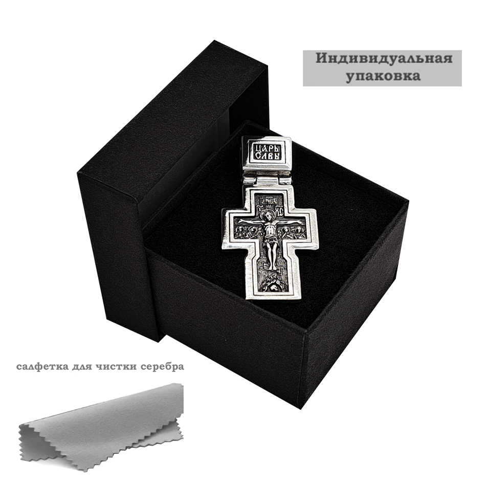 Двусторонний нательный крест выполнен из серебра 925 пробы в полном соответствии канонам Православной Церкви.