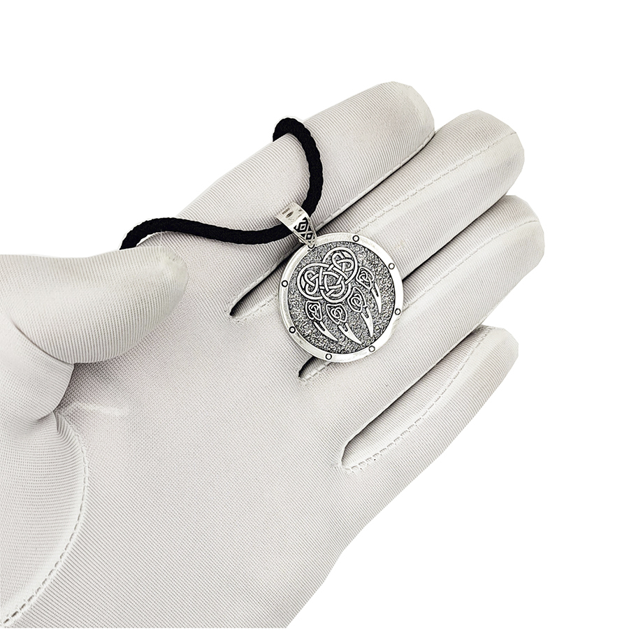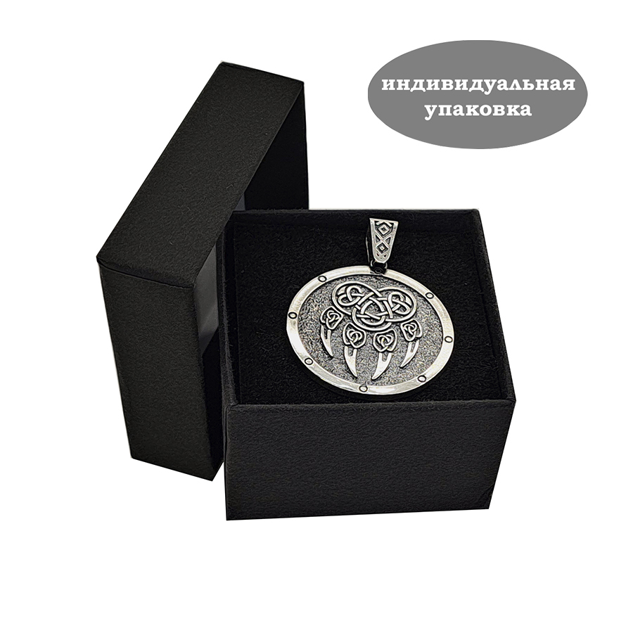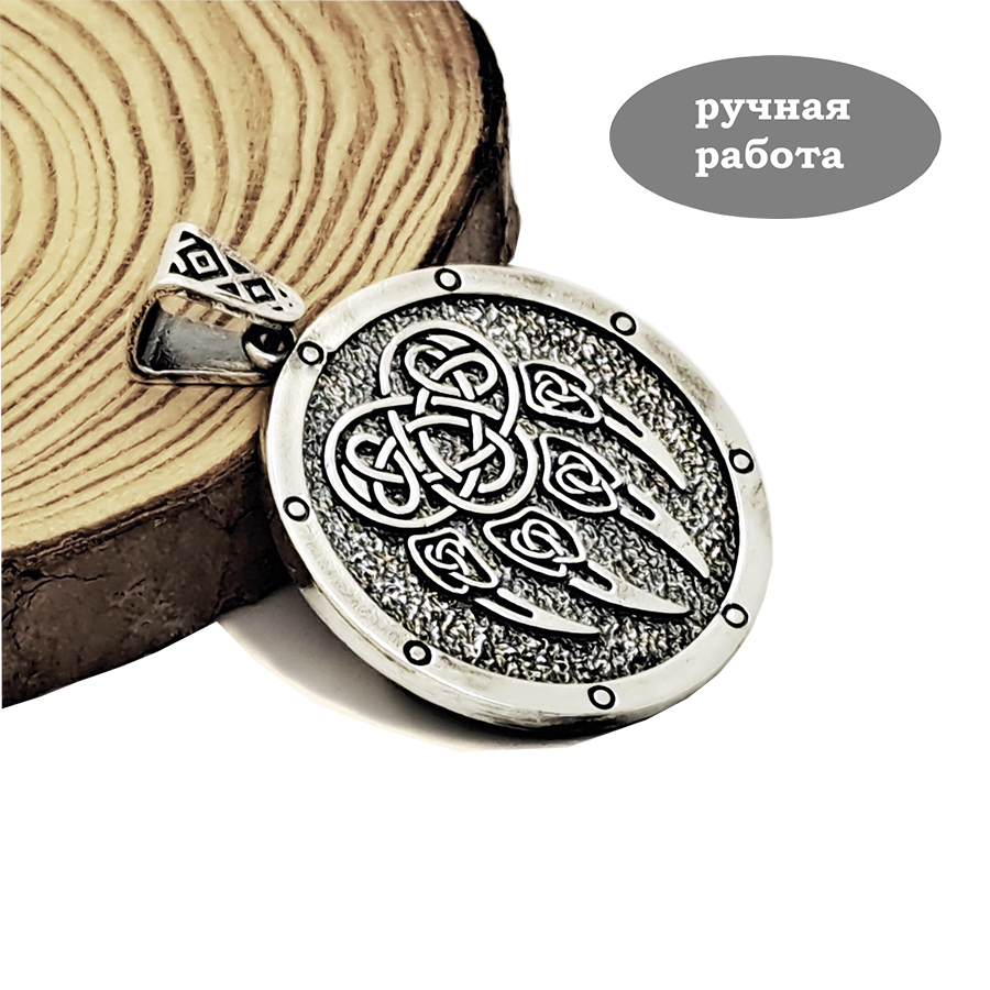 Подвеска оберег двусторонняя Печать Велеса, Волчья Лапа из серебра 925 пробы. Покрытие - оксидирование (чернение).