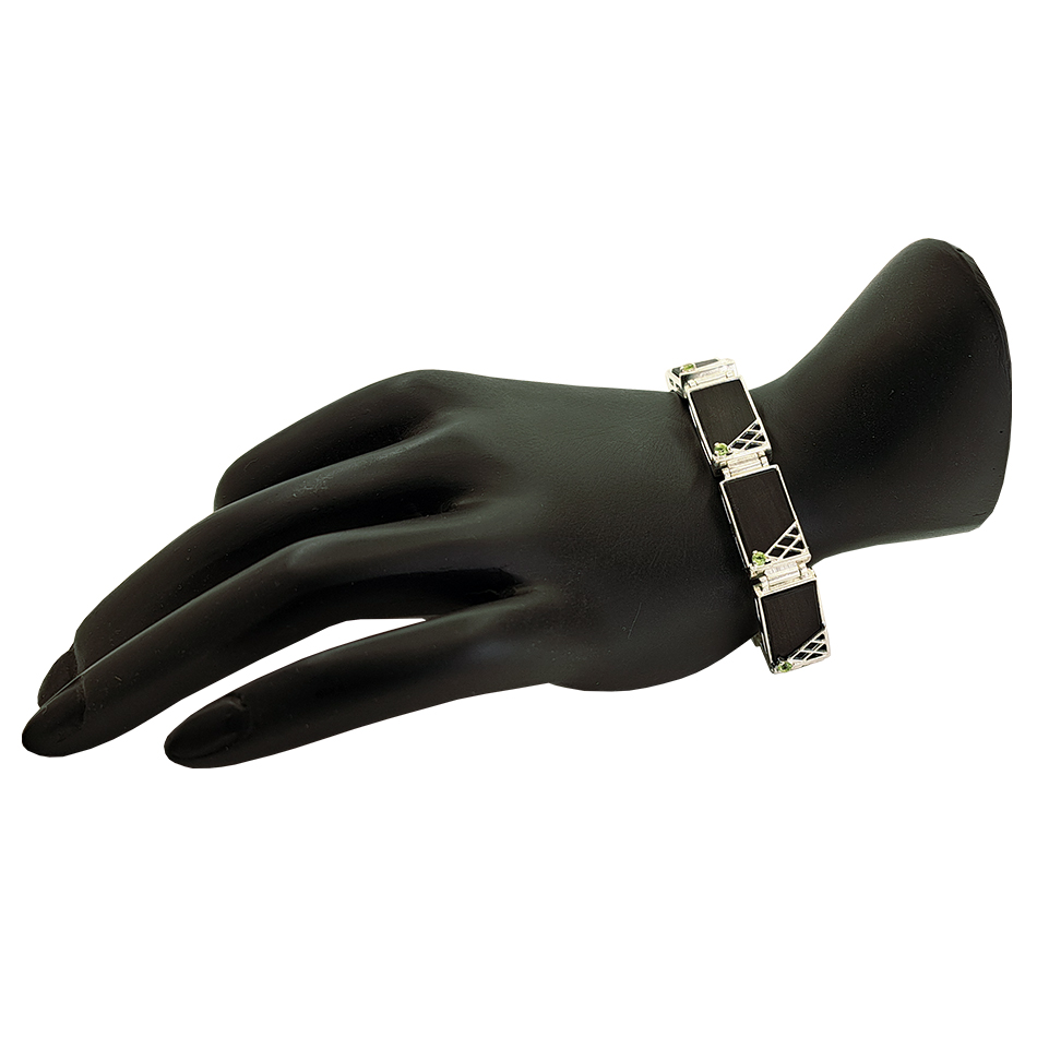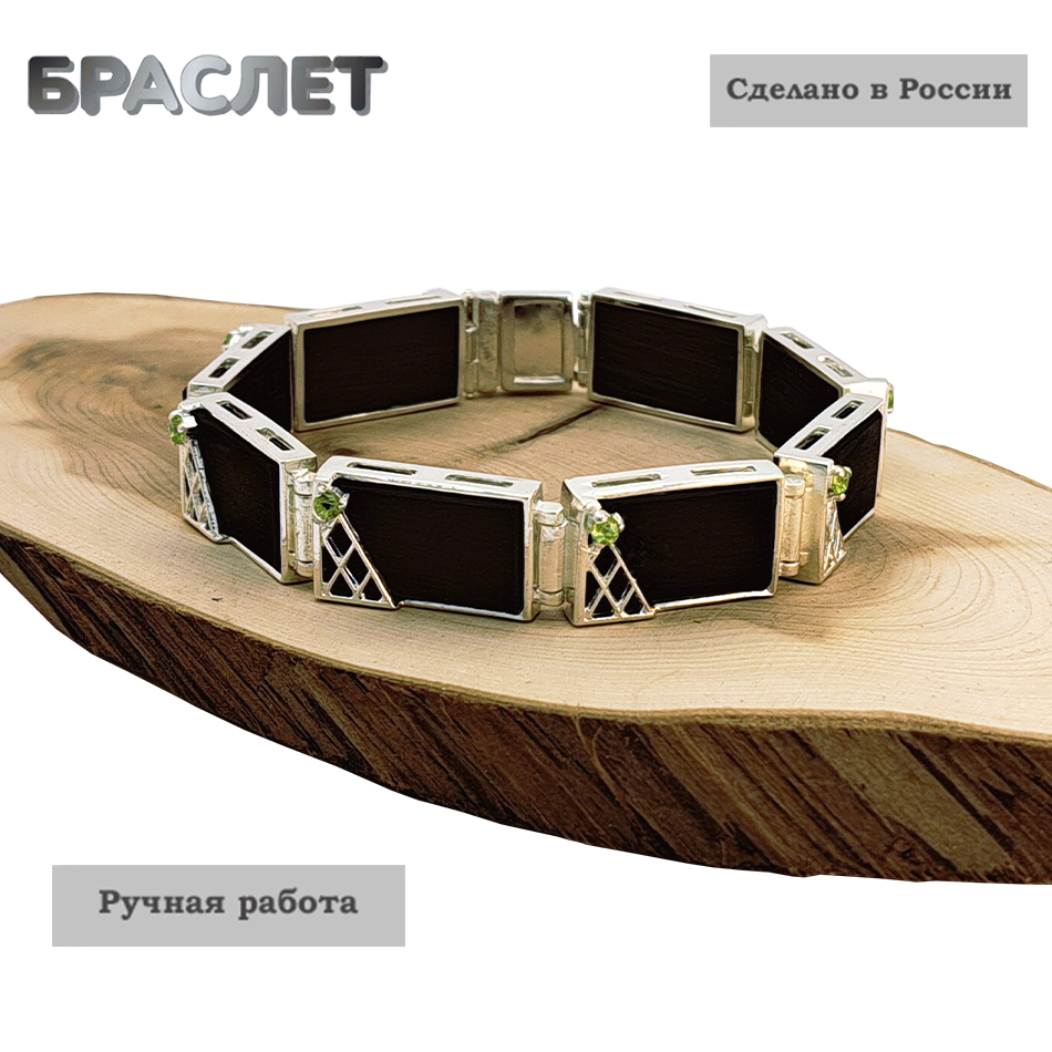 Женский браслет из серебра 925 пробы с хризолитами и эбеновым деревом - это уникальное сочетание изысканности и элегантности. Изготовленный вручную, этот браслет станет прекрасным дополнением к вашему образу и подчеркнет ваш стиль.